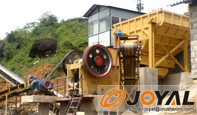 顎式破碎機(jī)的結(jié)構(gòu)主要有機(jī)架、偏心軸、大皮帶輪、飛輪、動顎、側(cè)護(hù)板、肘板、肘板后座、調(diào)隙螺桿、復(fù)位彈簧、固定顎板與活動顎板等組成,其中肘板還起到保險作用。該系列鄂式破碎機(jī)破碎方式為曲動擠壓型,電動機(jī)驅(qū)動皮帶和皮帶輪,通過偏心軸使動顎上下運(yùn)動,當(dāng)動顎上升時肘板和動顎間夾角變大,從而推動動顎板向定顎板接近,與此同時物料被擠壓、搓、碾等多重破碎;當(dāng)動顎下行時,肘板和動顎間夾角變小,動顎板在拉桿、彈簧的作用下離開定顎板,此時已破碎物料從破碎腔下口排出,隨著電動機(jī)連續(xù)轉(zhuǎn)動破碎機(jī)動顎作周期性的壓碎和排料,該破碎機(jī)實(shí)現(xiàn)批量生產(chǎn)。